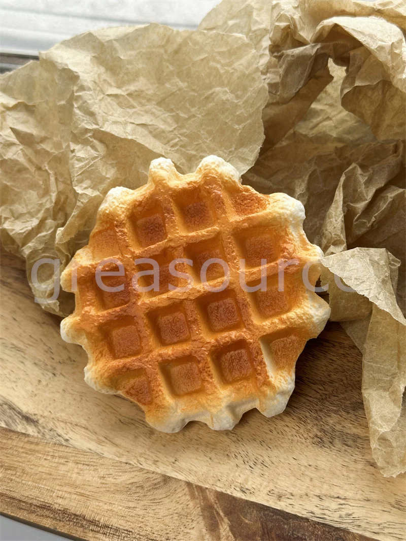 Pu Soft Shaped 3D Realtsic Belgian Waffle Sweet Model Original Golden Color Artificial Foam Elastic Soothing Props Faux Bread